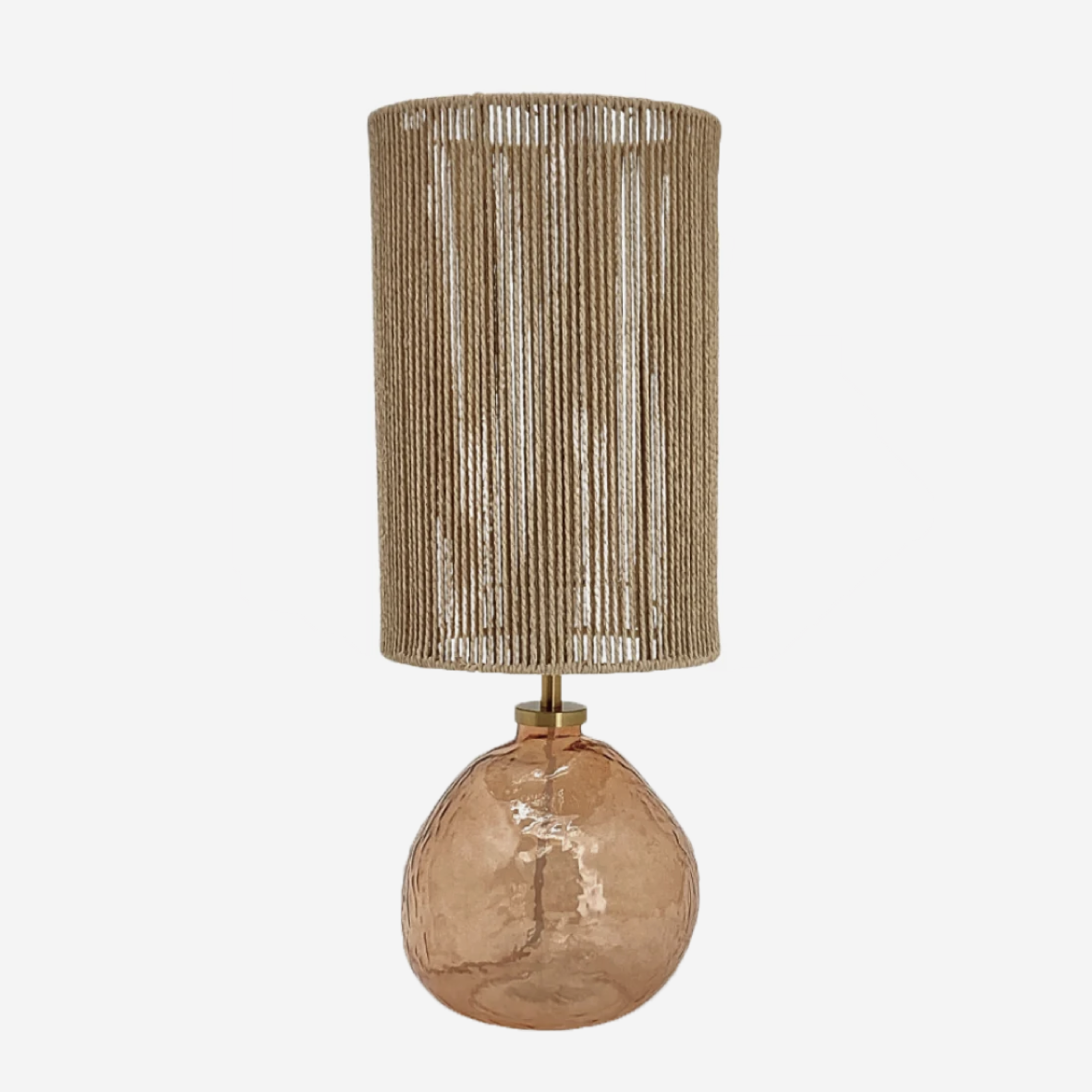 Elevate your living space with the Mallen Table Lamp in Amber, featuring a sleek amber coloured glass base that adds a refined touch of depth and texture. Its natural jute shade offers a warm, inviting glow, perfectly balancing modern elegance with organic charm. This lamp seamlessly complements sophisticated interiors, creating a stylish ambiance while providing functional lighting.